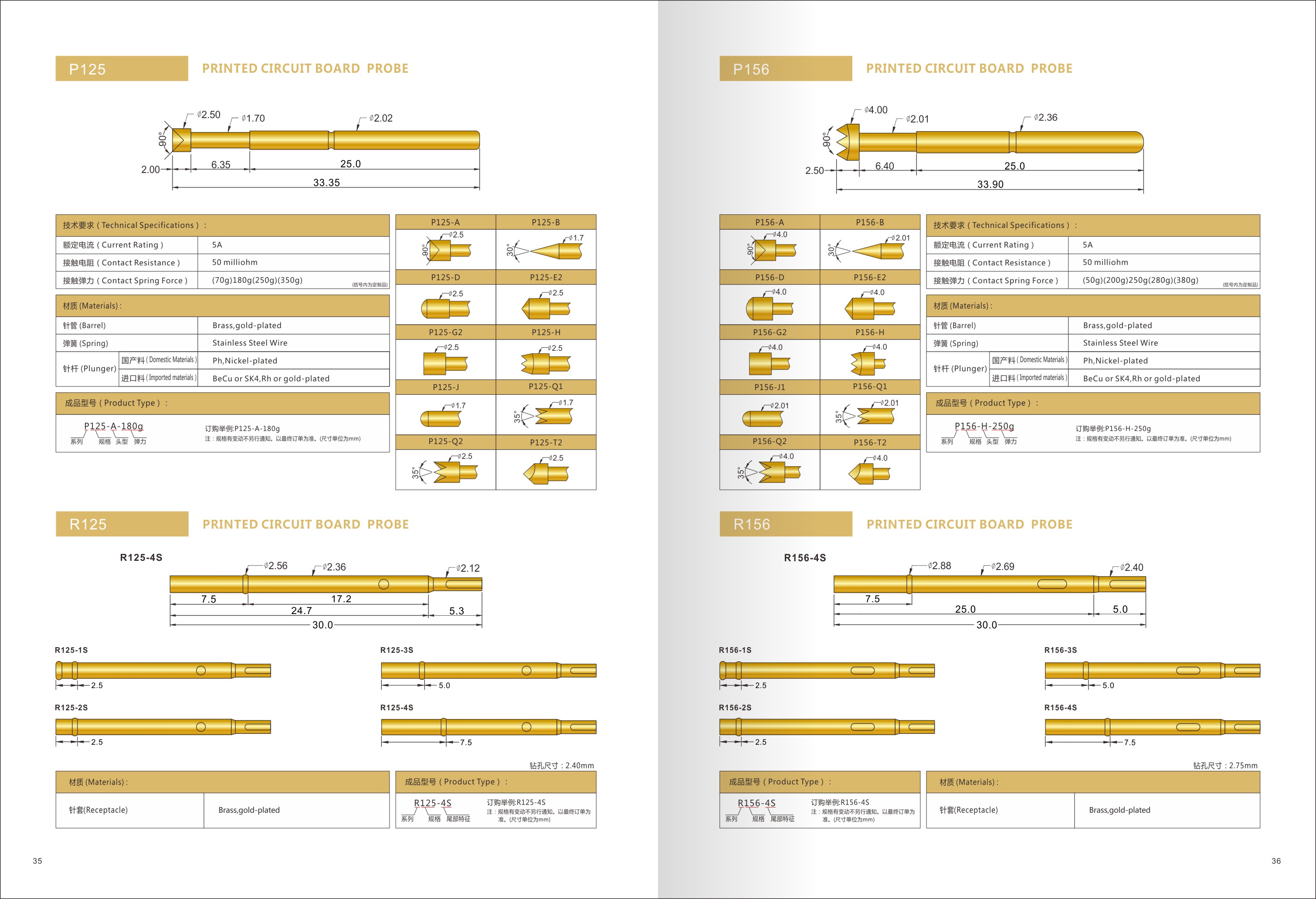 P125系列测试探针规格型号