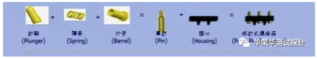 Pogo Pin弹簧针是一种特殊连接器,基本结构有一个车削针管,车削针头和压缩弹簧构成,针管管口处卷边,将针头保持在针管内,靠弹簧提供接触力使针头与对接零件之间建立电连接。