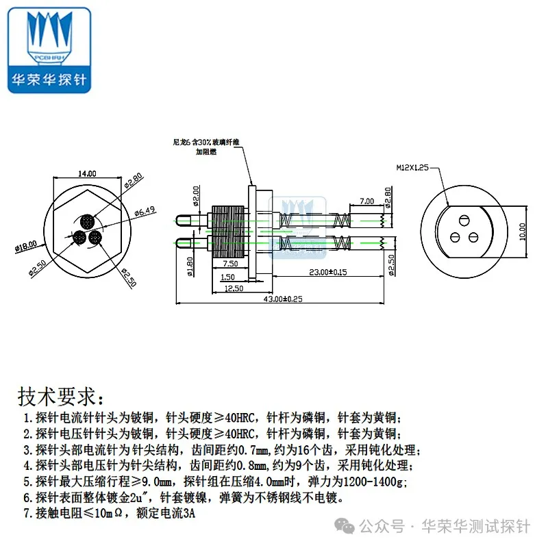 三针组大电流探针是用于测试和测量高电流应用的专用工具,广泛应用于电子制造业、汽车工业、航空航天等领域,以下是关于三针组大电流探针的详细介绍: