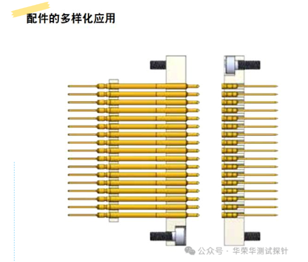 界面探针主要用于大型测试机台,它们在测试过程中起到连接测试机台和测试夹具的作用,确保信号和电力能够准确传输。