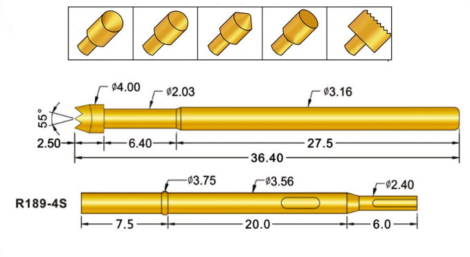 华荣华 P189-H(UB189-H)探针是一款专为PCB 测试厂设计的3.16mm 直径标准 ICT 测试探针,核心特点是采用九爪梅花头(H 型),主打高稳定、防虚接、长寿命,是 PCB/ICT 测试中的通用主力型号。