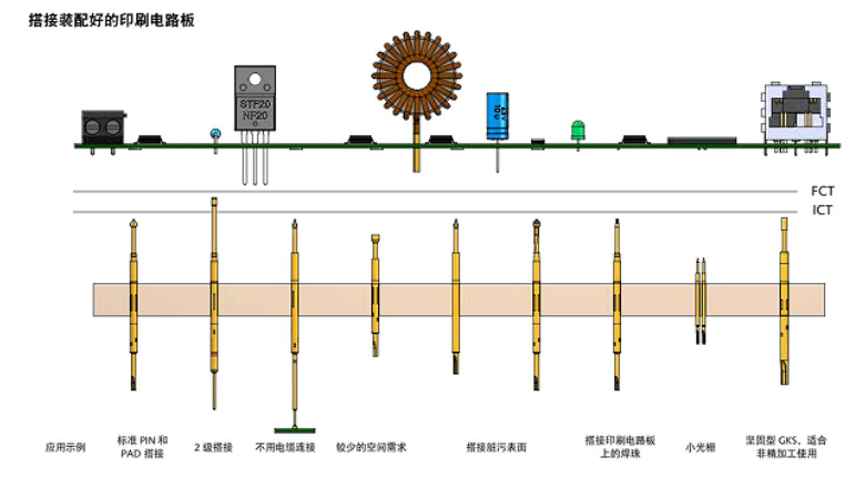 ICT在线测试针主要应用于在线电路测试和功能测试,也称ICT和FCT测试,也是目前应用较多的一种探针。