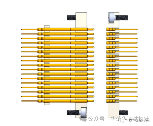 界面针主要用于测试机台与测试夹具的接触点和面,附图右边即为界面,用于将信号进行无线转接。