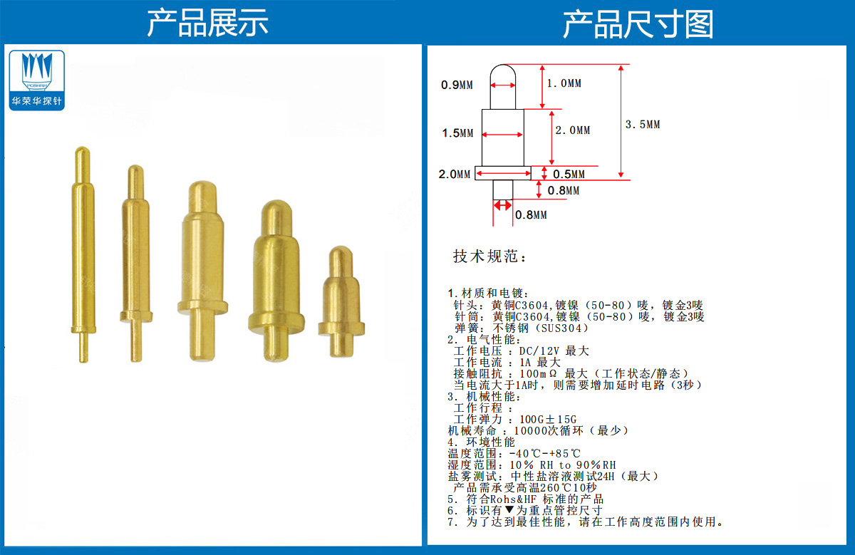 产品介绍:这个针通常用于智能手表,蓝牙耳机上的有充电的功能,但是探针总体来说还是测试的
