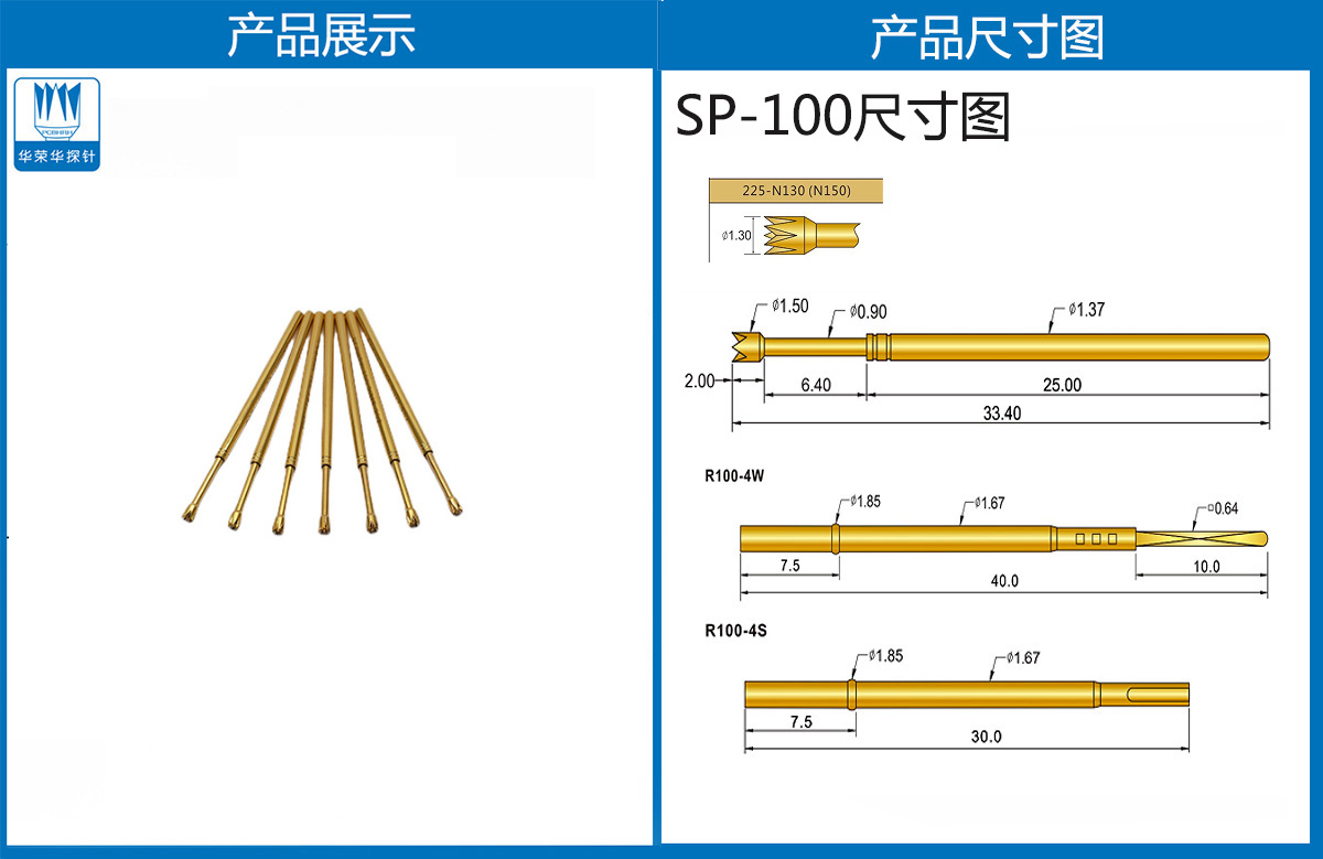 产品简介:SP-100探针、1.37mm测试针、总长33.40mm、弹簧针、测试针、探针